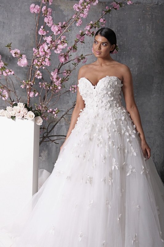 Marque La mariée de David Se positionne comme une marque "Pour toutes les tailles et tous les portefeuilles." Eh bien, ils ne mentaient certainement pas avec les tailles et le prix est assez correct, à partir de 200 $. Et quels modèles étonnants de robes de mariée peuvent être trouvés chez ce designer!