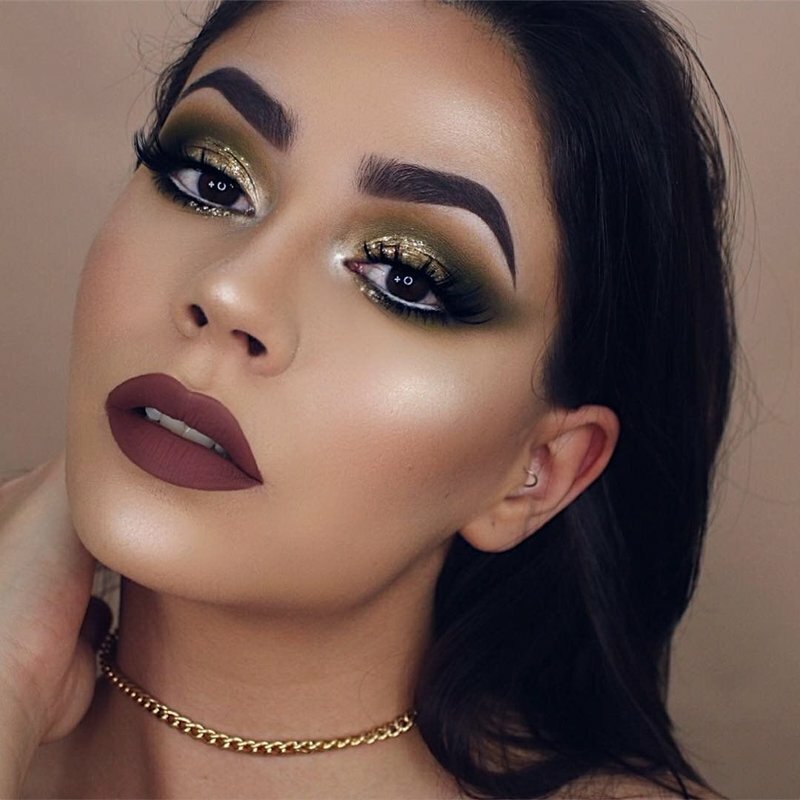 Pour créer une harmonie et un contraste lorsqu’on applique un maquillage éclatant aux femmesyeux vertsutilisé les nuances rouges et violettes de la palette. Si les yeux sont peints en couleur brique, le rouge à lèvres est sélectionné dans le même ton ou rose pâle.